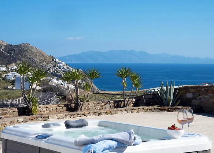 Le Bar Jackie O’ à Mykonos est niché à environ 10 minutes en voiture de cette villa accueillante et la Petite Venise est à 15 minutes en voiture.